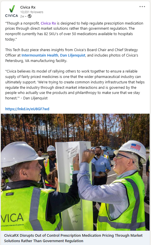 Civica Rx Board Chair Dan Liljenquist describes the nonprofit generic pharmaceutical company’s mission, structure and influences on the market, saying, “When market failures are hurting people, new markets should emerge to correct that failure.”